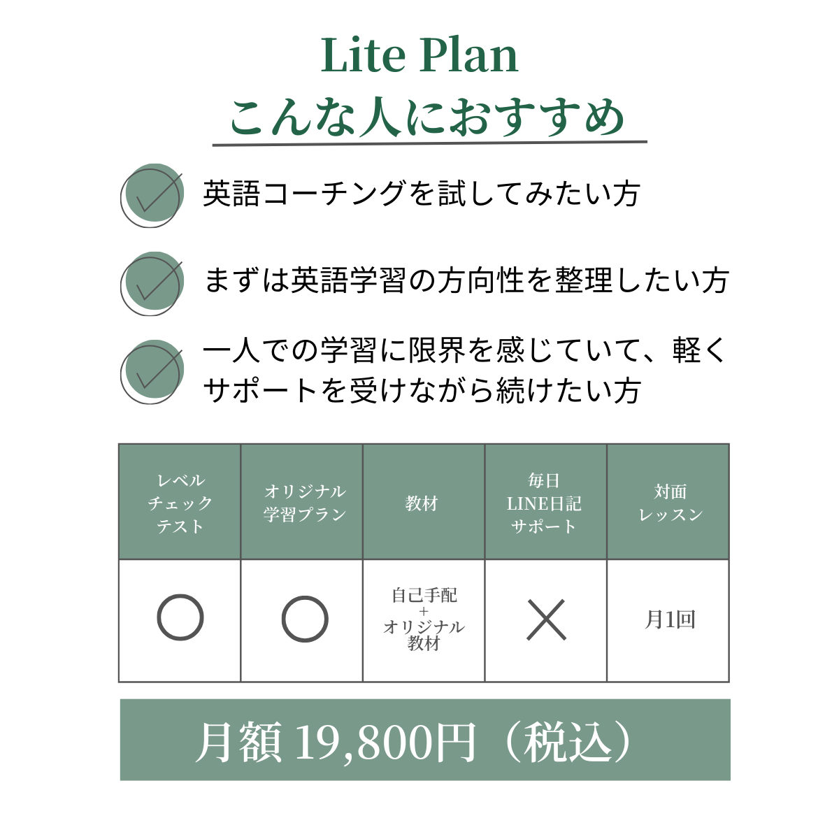 Liteプランは、まずは英語コーチングがどのようなものかお試ししたい方におすすめです。