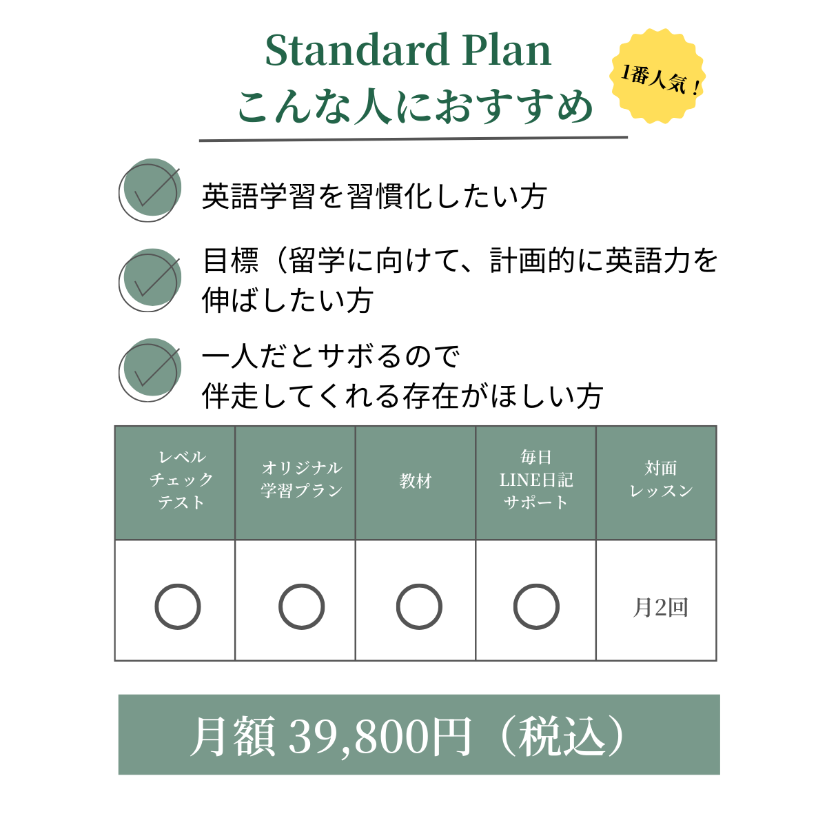 留学・仕事・キャリアなど、明確なゴールに向けて最短ルートで進みたい方や、より密なサポートを求める方におすすめです。